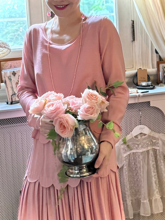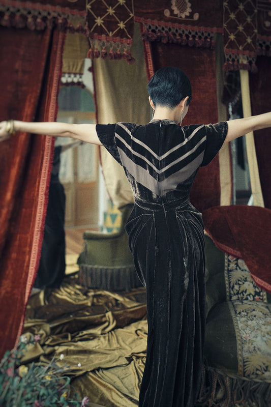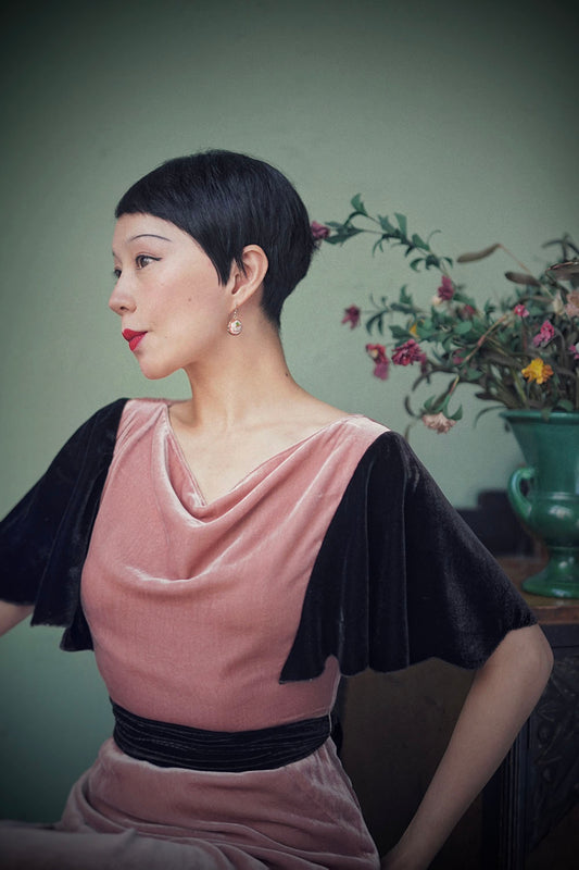1930s|Cap Sleeve Velvet Gown (Pink + Coffee)