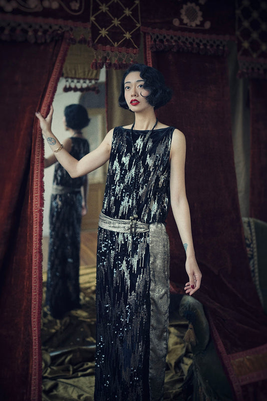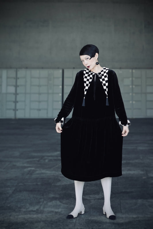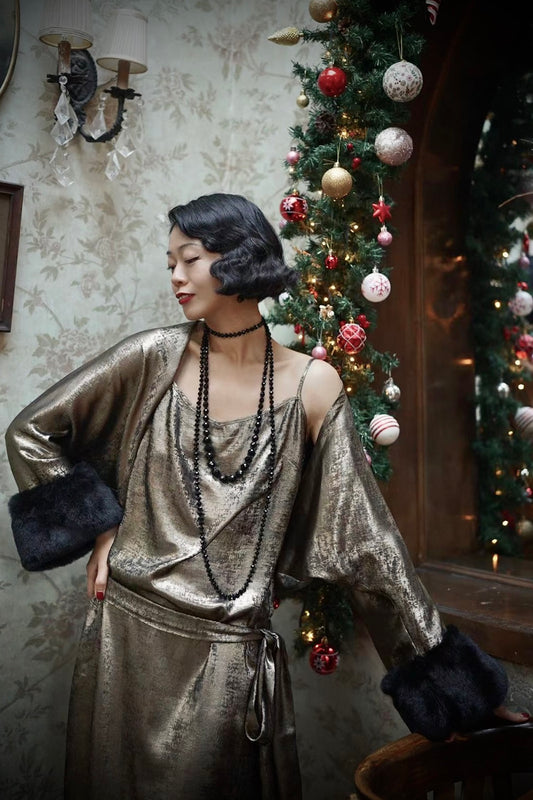 1920s |Doll-Collar Pleated Dress Set (Black&Yellow)
