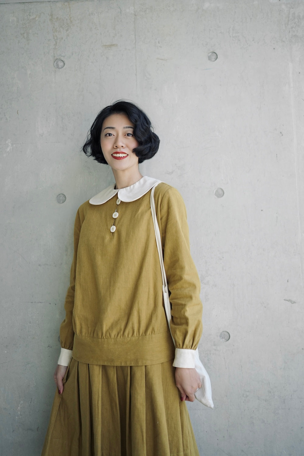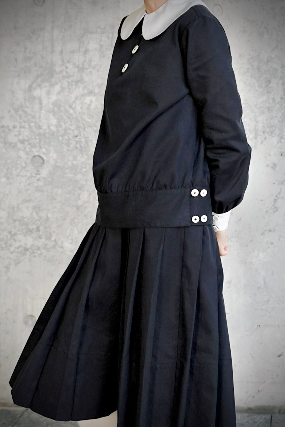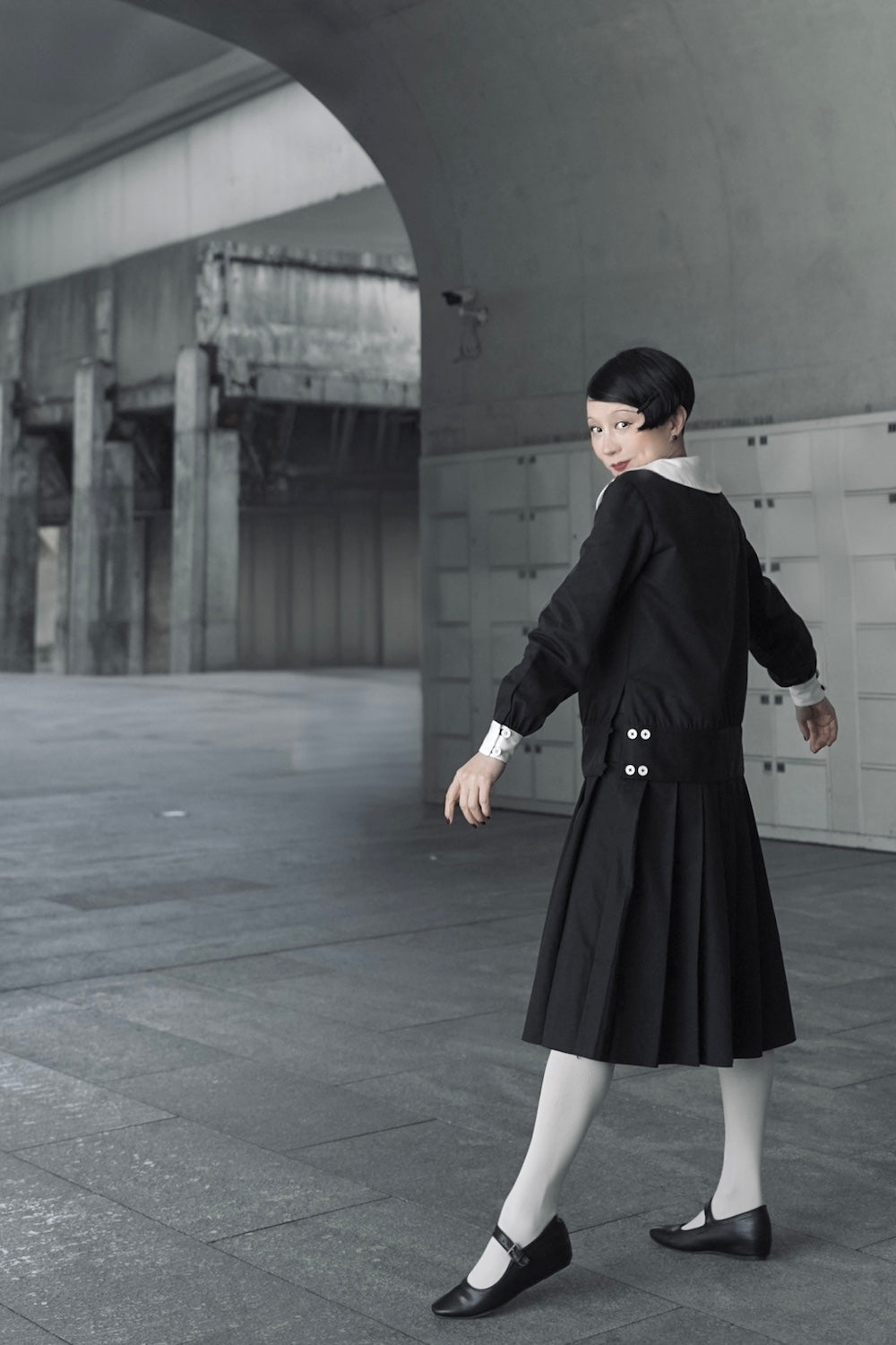 Bobbed hair, a doll collar, a knee-length skirt, white socks, and Mary Janes—this iconic silhouette draws directly from the urban young women portrayed by Colleen Moore, a famous 1920s Hollywood "flapper," in her silent films. Inspired by this, we present the "Two-Tone Moore Set."