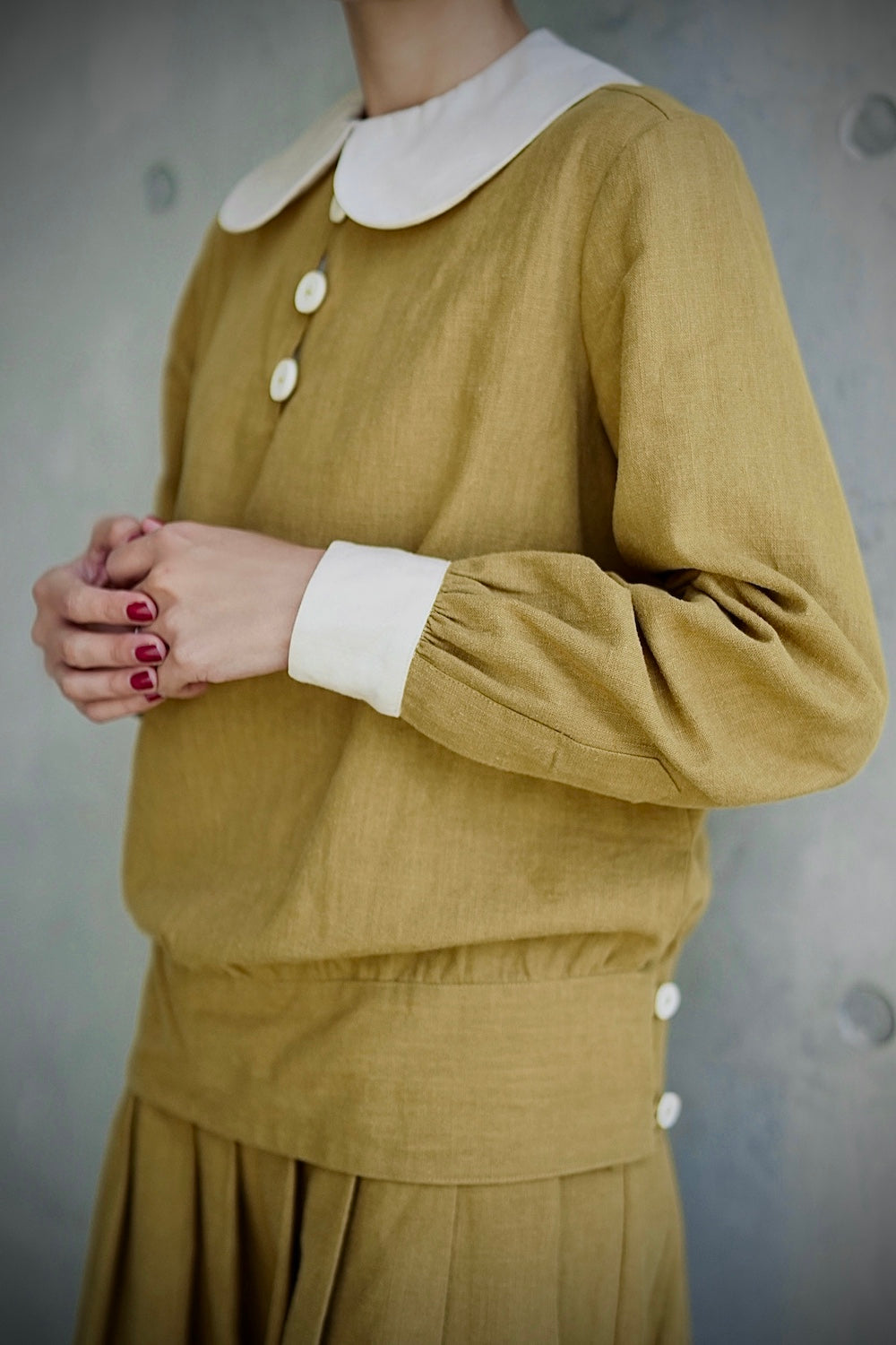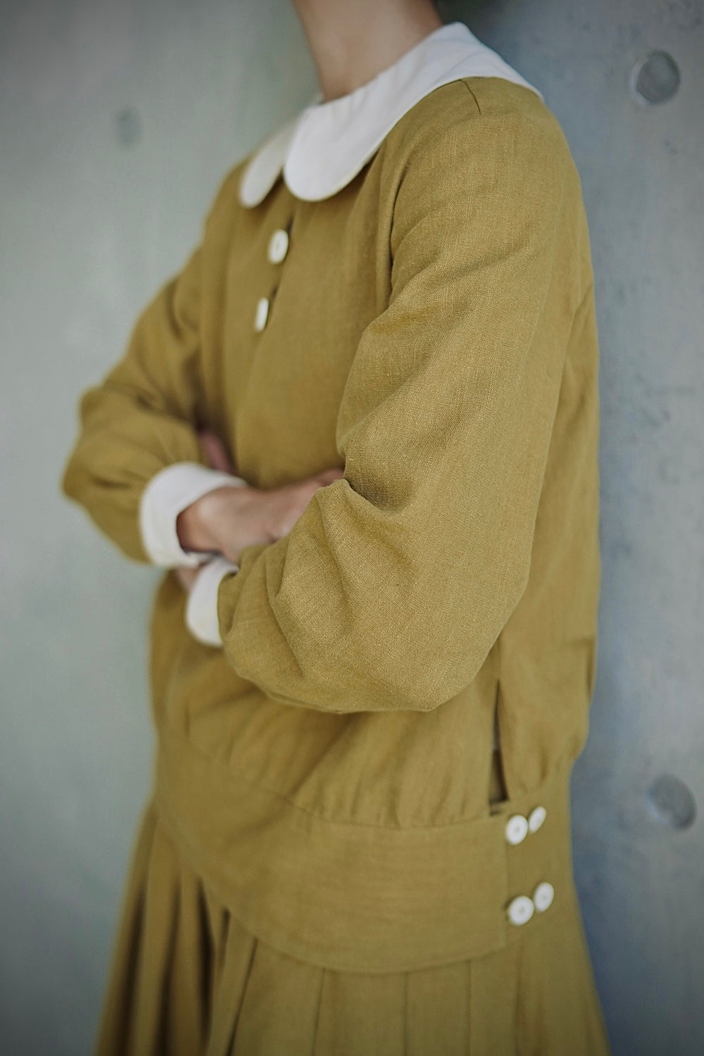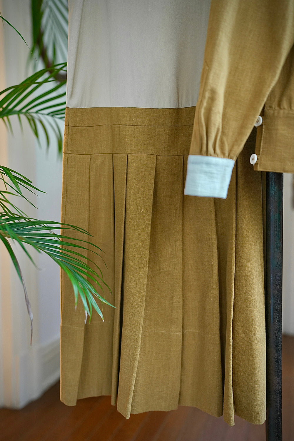 1920s |Doll-Collar Pleated Dress Set (Black&Yellow)