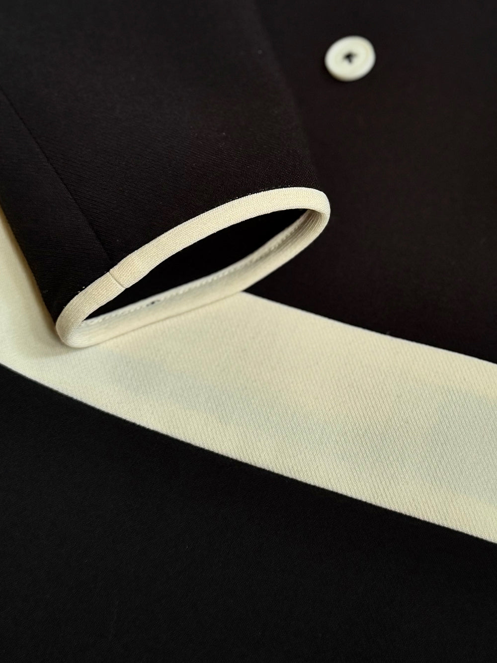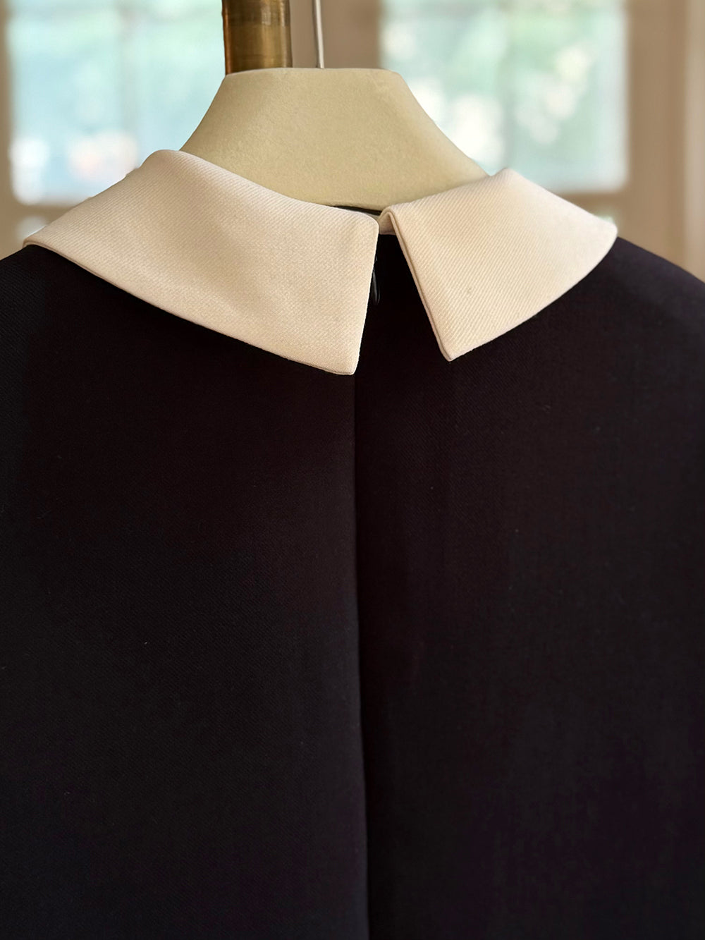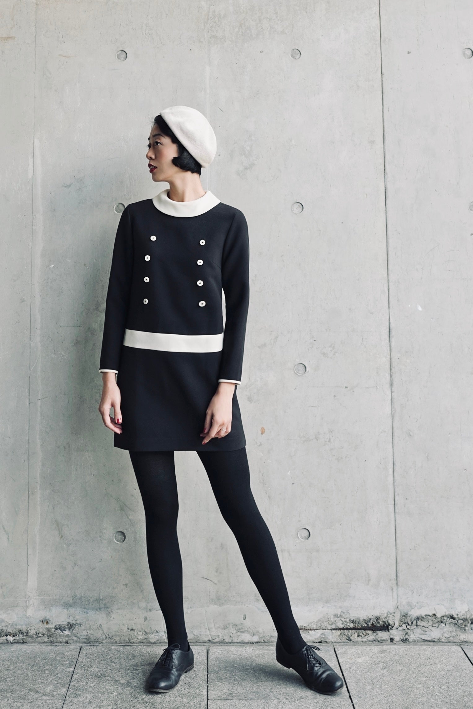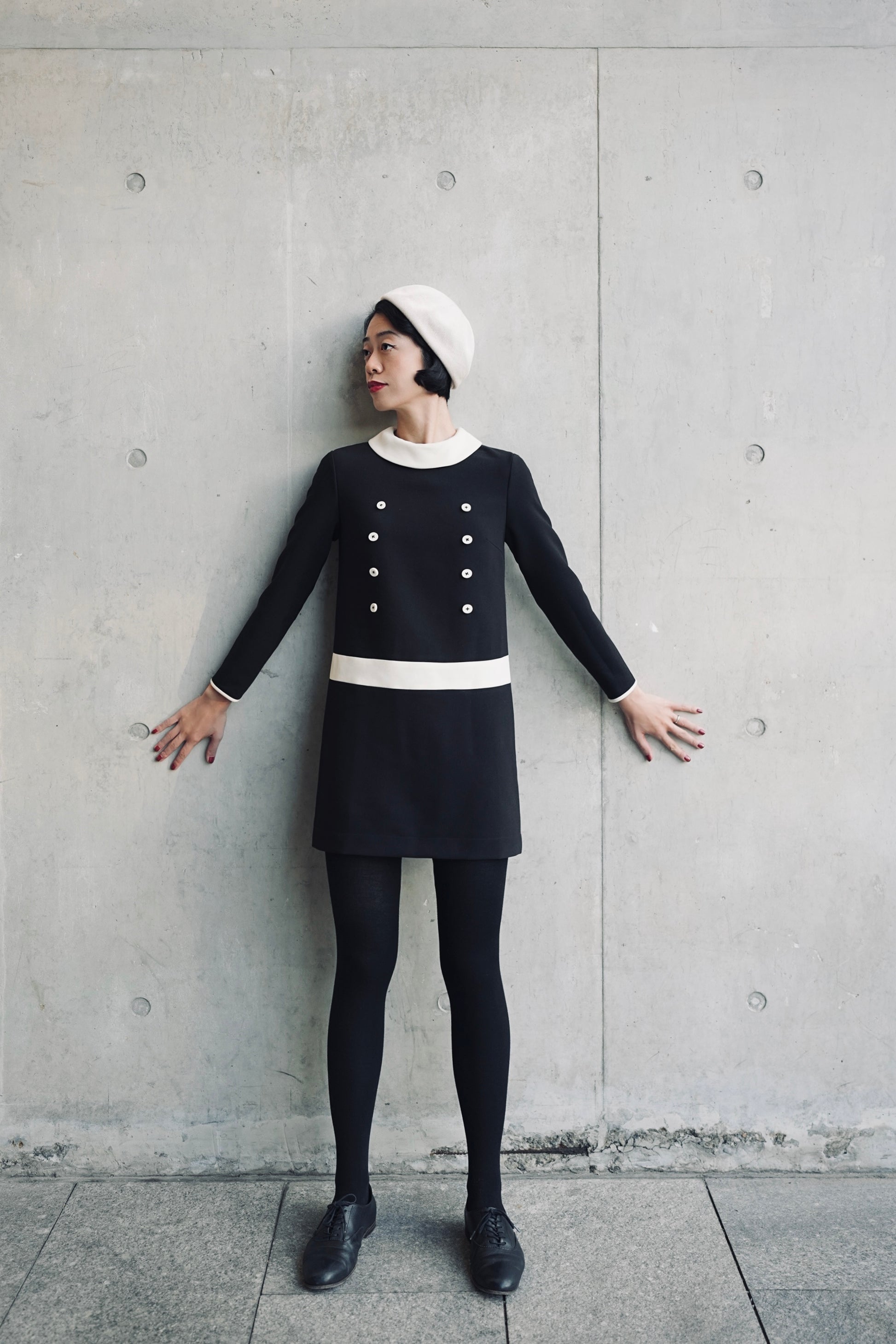 Inspired by London's Mod fashion of the 1960s, this mini skirt features a minimalist black-and-white design that highlights clean lines and striking contrast. The piece blends classic elegance with a youthful, independent spirit—evoking the image of Mary Quant's modern girl stepping out from Swinging London into the present day.